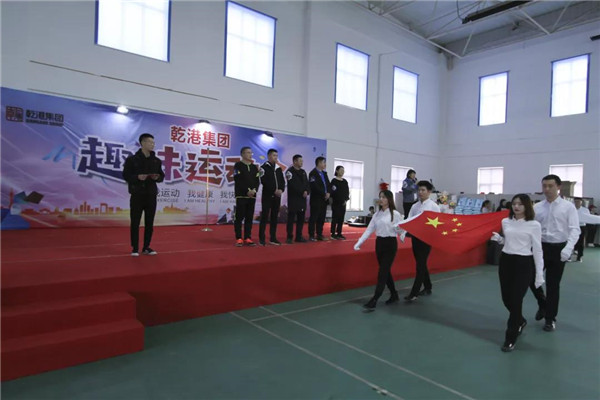 集團總部全體員工及工廠員工共組成六支方隊,國旗方隊、司旗方隊、以及各方隊旗,整體步伐一致,昂首挺胸,伴隨著國歌聲向主席臺邁進并致敬,展示了乾港人團結(jié)奮進,真誠務(wù)實的精神風(fēng)貌。