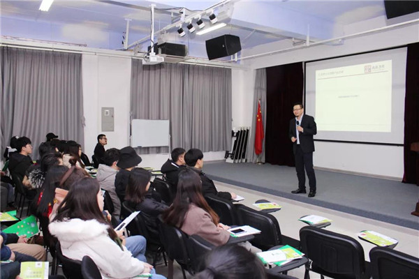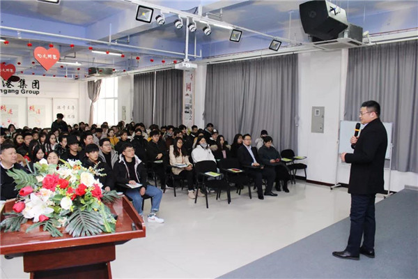 乾港集團(tuán)美博士環(huán)??偨?jīng)理常凱???,為在座的師生們解讀了大綠色環(huán)保家居、室內(nèi)污染物治理技術(shù)、方式方法及產(chǎn)品介紹等相關(guān)空凈治理知識(shí);秦皇島新型材料科技有限公司總經(jīng)理李勇劍李總則為在座師生帶來(lái)了綠色材料研發(fā)及生產(chǎn)使用工藝等內(nèi)墻環(huán)保壁材方面的知識(shí)。