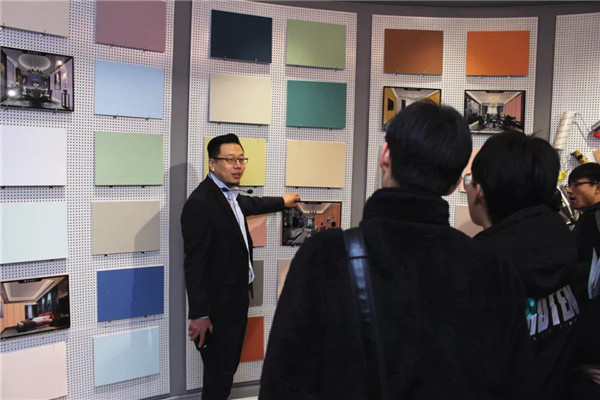 參觀完總部后,在解說(shuō)員的帶領(lǐng)下,河北環(huán)境工程學(xué)院一行人來(lái)到了我公司品牌體驗(yàn)展示中心。對(duì)于我司相關(guān)環(huán)保產(chǎn)品大家都還比較陌生,常凱???、李勇劍李總分別對(duì)室內(nèi)污染物治理展廳、企業(yè)綠色裝飾材料展廳進(jìn)行了細(xì)致介紹,讓大家對(duì)凈化原理及環(huán)保材料等有了一個(gè)全新的認(rèn)識(shí)!